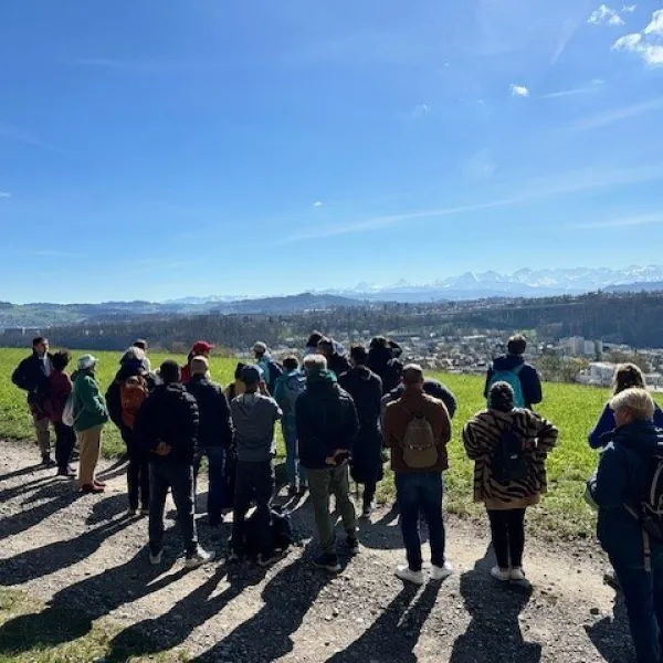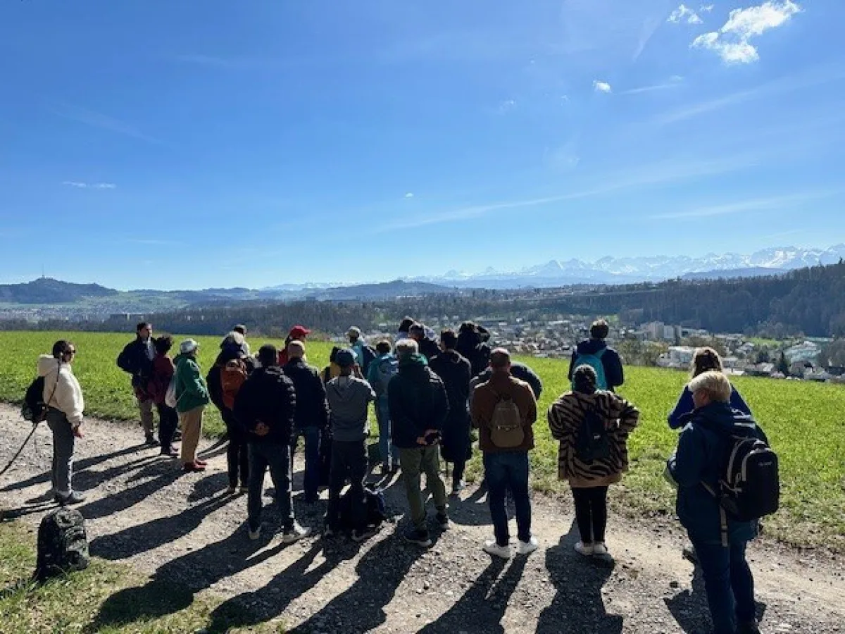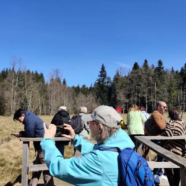 Pour le lancement de notre nouvelle offre "Randonnée & Allemand", le temps s'est montré sous son meilleur jour. Avec des températures printanières et beaucoup de soleil, notre groupe de randonneurs s'est mis en route vers les deux magnifiques tourbières de Büsslimoos et Lörmoos. Située à seulement 15 minutes en voiture du centre de la ville de Berne, cette magnifique réserve naturelle abrite les petits hauts-marais qui ont été conservés sur le Plateau bernois. Après le tronçon d'itinéraire à travers la forêt d'un vert profond - avec un jeu d'ombres et de lumières impressionnant - la vue s'est ouverte sur la vaste surface du fascinant haut-marais. Comme son nom l'indique, les "Büsseli" (linaigrettes) y fleurissent chaque année, offrant un spectacle naturel unique. Tous ceux qui souhaitent admirer ce spectacle à partir de mai et jusqu'en juin sont cordialement invités à répéter cette randonnée quelques semaines plus tard - cela en vaut la peine. Le Büsselimoos doit son nom à ces petits "Büsseli" blancs, les fruits de la linaigrette. Nous avons trouvé une belle place de pique-nique dans la forêt de Riederen. Nous avons déjeuné en toute convivialité, au milieu du chant des oiseaux et d'une nature intacte. Notre randonnée s'est terminée par un tour dans le Lörmoos. Tout au long de l'itinéraire, un magnifique panorama s'est présenté avec les Alpes bernoises au centre.