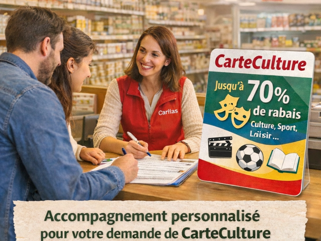 Dès la semaine du 19 janvier 2026 et pour une durée limitée, nous vous accompagnons gratuitement dans votre demande de CarteCulture, directement dans nos Epiceries Caritas :