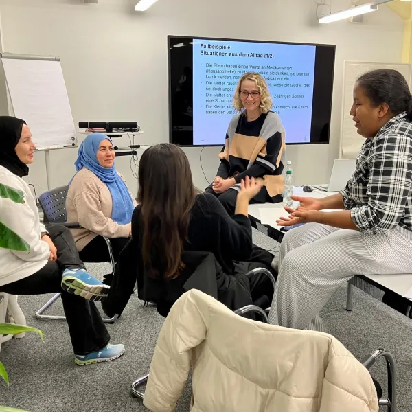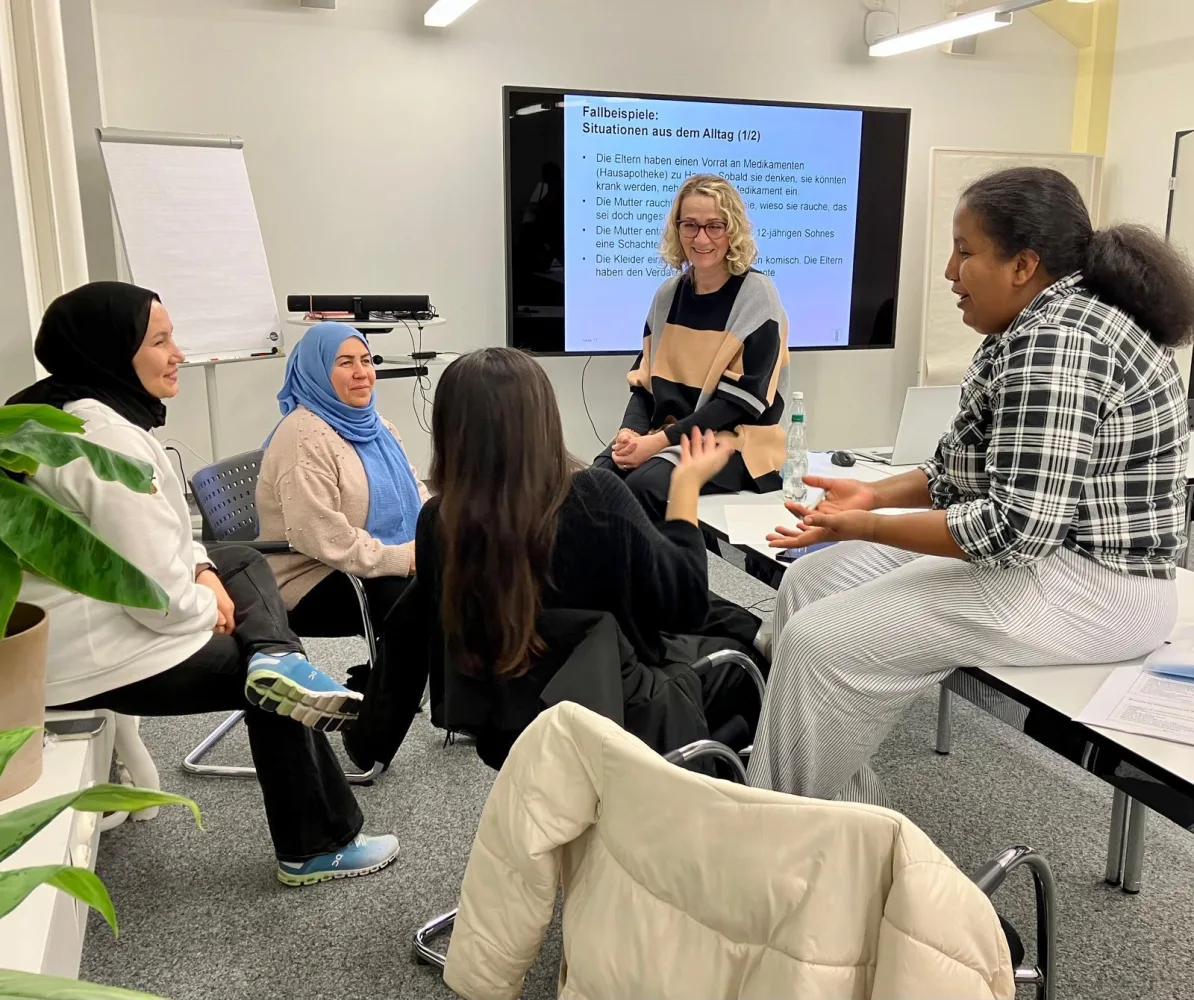 Le manque de connaissances linguistiques est un obstacle majeur à l'intégration. Dans l'offre de Femmes-Tische, il n'y a pas de barrière linguistique. Lors de tables rondes thématiques organisées dans un cadre privé, des animatrices transmettent aux participantes des informations importantes dans leur langue maternelle et leur font part de leurs connaissances et expériences.