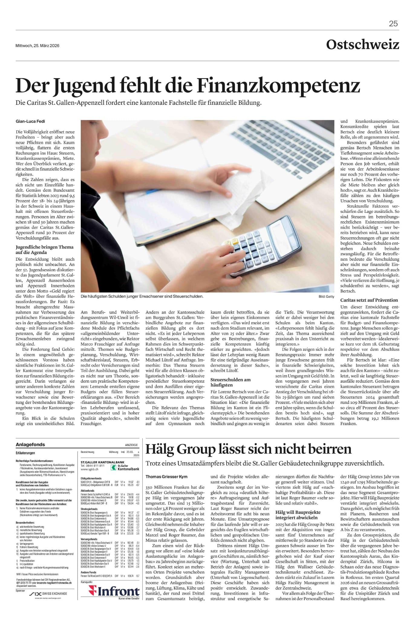St.Galler Nachrichten: Die Verschuldung junger Menschen ist ein akutes Problem