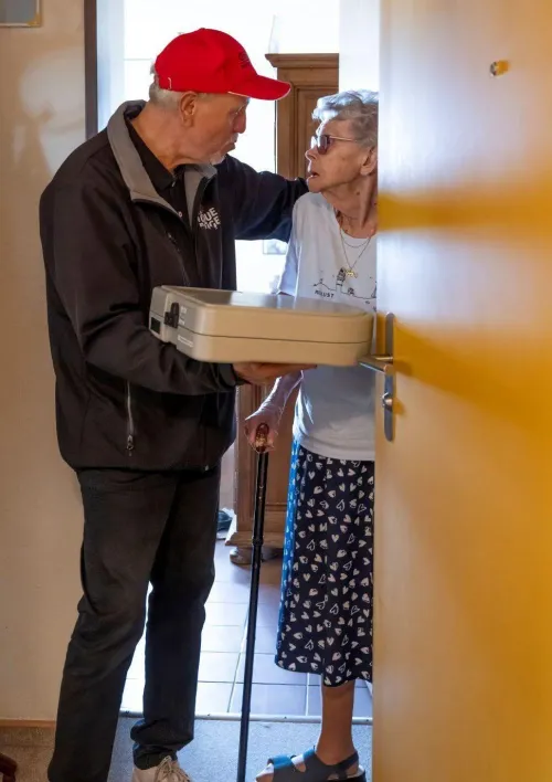 La ville de Neuchâtel s’éveille à peine quand Karim, 63 ans, commence sa tournée marathon pour la Toque Rouge, service de repas à domicile de Caritas Neuchâtel. Chaque jour, il livre un repas chaud et équilibré à une trentaine de personnes, la plupart âgées ou fragilisées. Pour plusieurs d’entre elles, la visite de Karim est comme un rayon de soleil qui éclaire une journée assombrie par la solitude. Le sourire éclatant de Françoise qui ouvre largement la porte de son vieil appartement en est la preuve. Les quelques mots échangés semblent lui réchauffer le cœur.