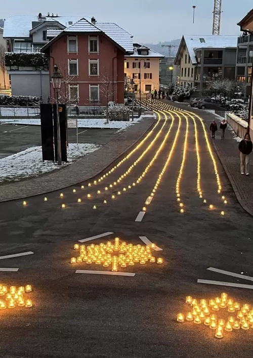Trotzdem bleibt das reale Licht auf unseren Strassen und Plätzen zentral. Immer wieder sagen Teilnehmende: «Das tut einfach gut – das Licht, die Wärme, die Gemeinschaft.» Ein Meer aus Kerzen, das gemeinsam entzündet wird, ist mehr als ein Symbol – es ist ein Erlebnis. Wie an einem Lagerfeuer kommen Menschen zusammen, erzählen, erinnern, im Flackerlicht der Flammen. In einer zunehmend digitalen Welt ist dieses echte, leuchtende Miteinander wichtiger denn je.