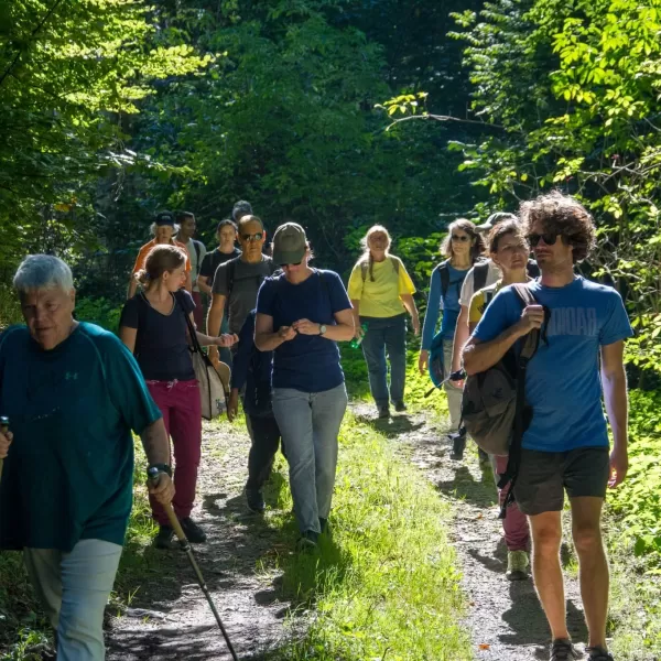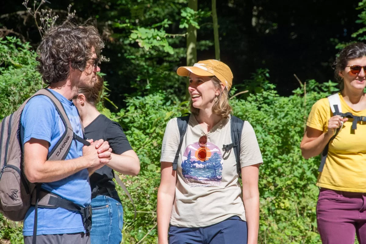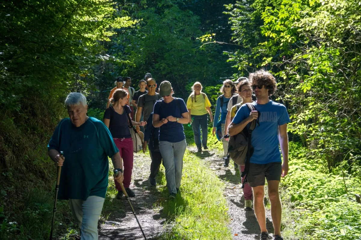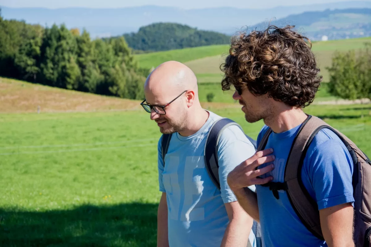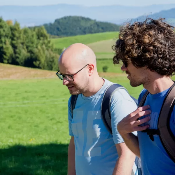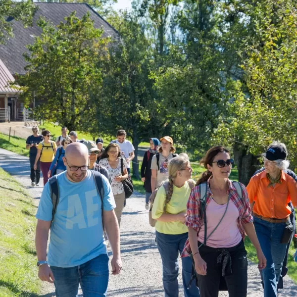 Der Abstieg nach Schliern führte durch eine abwechslungsreiche Landschaft mit Wäldern, Wiesen und immer wieder neuen Perspektiven auf die Umgebung. Dabei kam es zu einer spontanen, kleinen Pilzkunde: Einige aufmerksame Teilnehmende entdeckten am Wegrand verschiedene Pilze, was schnell das Interesse der Gruppe weckte. Gemeinsam wurde eifrig bestimmt und diskutiert.