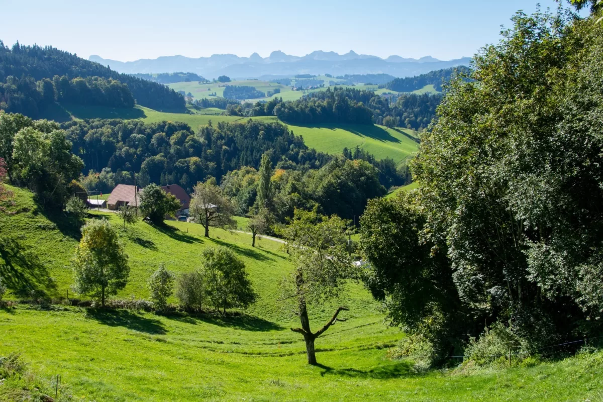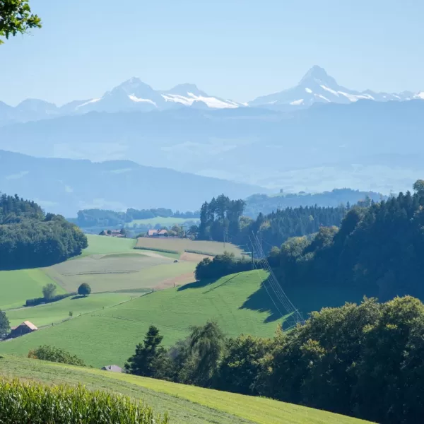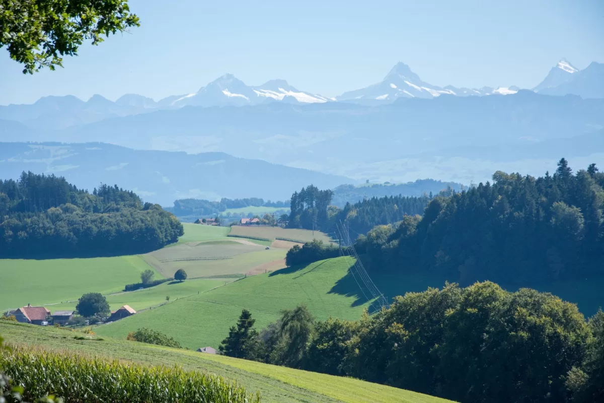 In Kühlewil starteten wir bei wunderschönem Wetter unsere Wanderung. Der Aufstieg über Oberulmiz zum 937 Meter hohen Ulmizberg verlief auf angenehmen Wegen und wurde begleitet von herrlichen Ausblicken auf die sanfte Hügellandschaft und die majestätischen Berner Alpen.