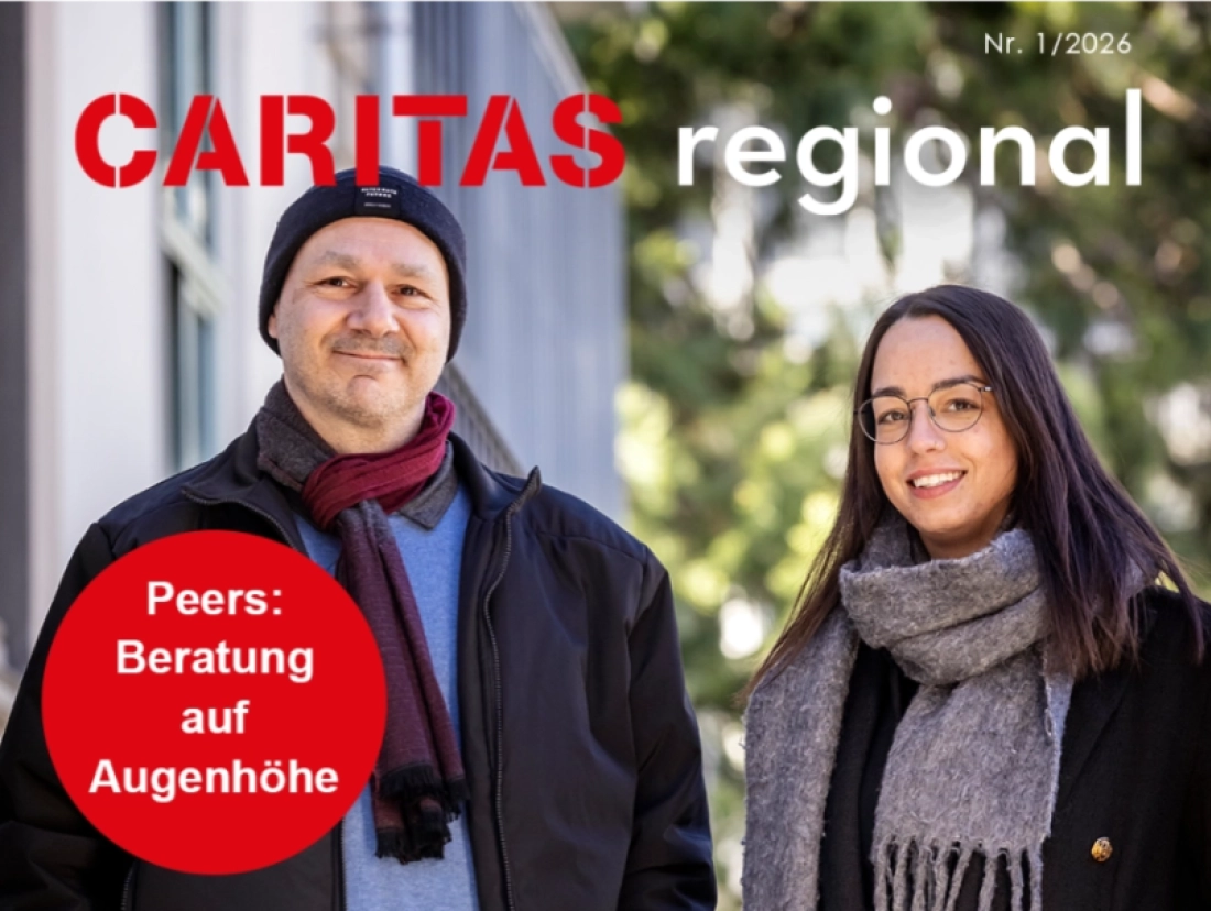Zweimal jährlich erscheint das Magazin «Caritas regional». Spannende Eindrücke aus den Projekten von Caritas, bewegende Einblicke in das Leben von Armutsbetroffenen und Einschätzungen von Fachpersonen bieten interessanten Lesestoff. In der aktuellen Ausgabe 1/2026 berichten die Peer-Berater Mirco Deflorin und seine Kollegin Naera Giaimo, wie sie Betroffene begleiten und wie sie Menschen helfen, nach psychischen Krisen im Arbeitsalltag wieder Fuss zu fassen.