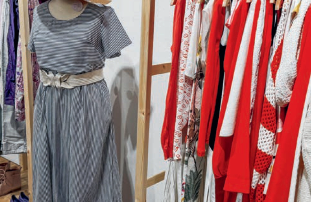 Ob ein T-Shirt, Markenjeans oder ein edler Blazer – «carla» bietet für alle etwas. Menschen mit wenig Geld finden gepflegte Mode zu fairen Preisen und können ihr Budget entlasten. Wer eine Caritas-KulturLegi besitzt, erhält zusätzlich 30 % Rabatt. «Daneben haben wir immer einzelne luxuriösere Teile an einem Ständer», erklärt Barbara Weber. Damenkleidung, Schuhe und Accessoires machen den Grossteil des Angebots aus, zudem wird ein kleines Herrensortiment laufend erweitert. Seit Dezember letzten Jahres gibt es auch einen Raum im Untergeschoss, der Platz bietet für ergänzendes Sortiment.