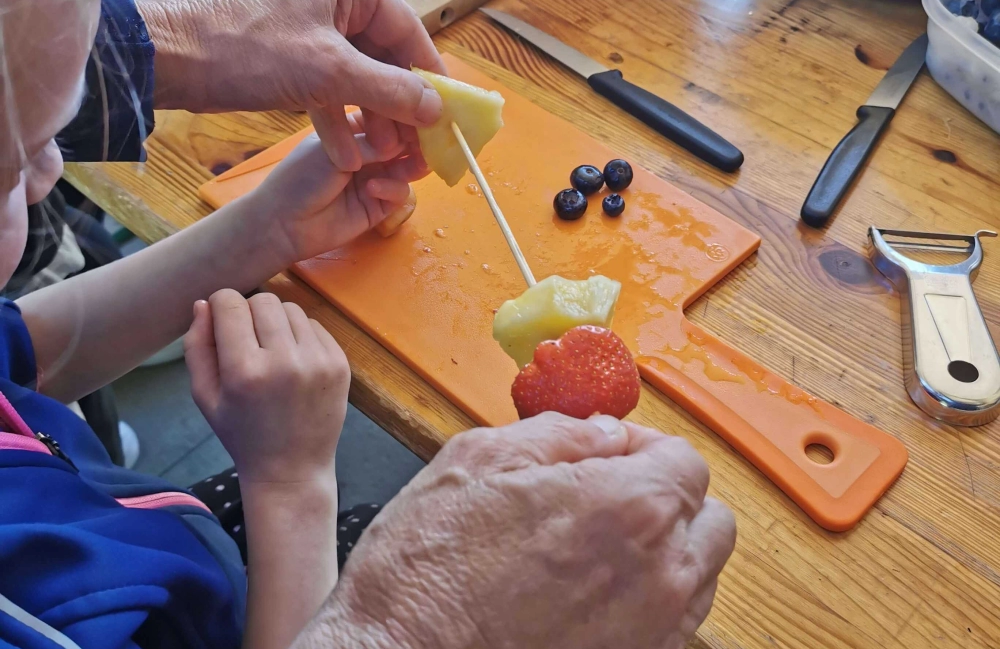 Nach 11 Tagen gab es die Möglichkeit zusammen Zeit zu verbringen. Die Paten und ihre Patenkindern mit Eltern waren zu einem Sommeranlass eingeladen unter dem Motto «Backen und spielen versus konsumieren und gamen».