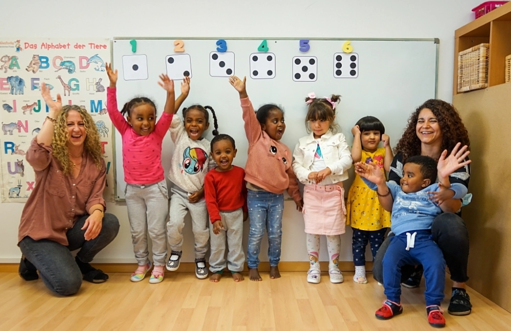 Jedes Kind möchte sich mit anderen verständigen. Die Sprache lernen wir spielerisch und alltagsorientiert. Gemeinsam erzählen wir Geschichten, singen Lieder, lernen Verse und Wortspiele kennen und benennen unsere Aktivitäten im Alltag.