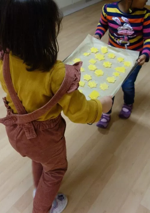 Da unsere Spielgruppe am Hauptstandort der Caritas Zentralschweiz liegt, haben wir Zugang zu verschiedenen Betrieben der Caritas Zentralschweiz. So können wir zum Beispiel auch mal mit den Kindern in der Küche des Restaurants Guetzli backen oder Material aus der Schreinerei besorgen.