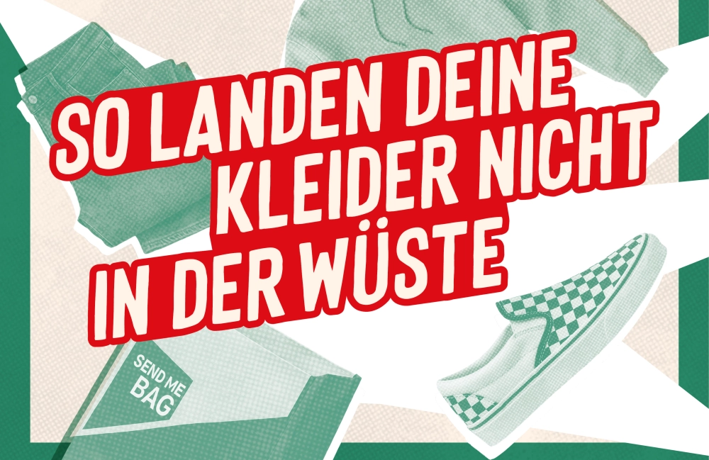 Die «SendMeBag-Tasche» mit Kleidern füllen und kostenlos per Post an uns senden. Wir schicken dir die Tasche zurück. Oder du bringst die Kleider im Laden vorbei.