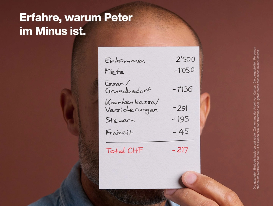 Um genau diese Gesichter und Geschichten zeigen zu können, griff die Migros auf die Expertise von Caritas Zürich zurück. Die fiktiven, aber realitätsnahen Budgets und Lebensgeschichten wurden zusammen mit unserer Beratungsabteilung erarbeitet und stehen symbolisch für einen grossen Teil unserer Klientinnen und Klienten.